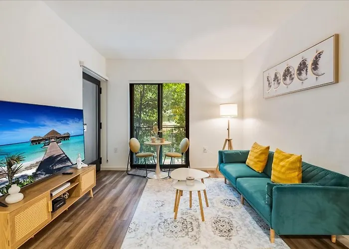The 1-room Cozy 1Br Apt In Hollywood W Pool, Gym And Parking Los Angeles is located nearly 5 minutes' walk from the Hollywood and Vine intersection and overlooks the garden. The live - performance auditorium "Dolby Theatre" is just 1.6 km from property, while Hollywood Playground is just 1.8 km away.